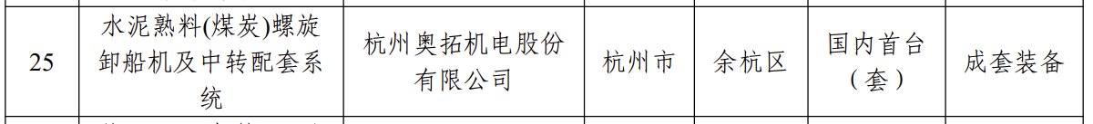 Gần đây, “Clinker xi măng (Than) S phi hành đoàn Hệ thống chuyển tải và hỗ trợ vận chuyển tàu," được phát triển độc lập bởi CÔNG TY TNHH Cơ Điện Hàng Châu Aotuo. (sau đây gọi là "AOTUO"), đã được công nhận thành công là thiết bị đầu tiên ở Trung Quốc. Thiết bị này thuộc ngành công nghiệp thiết bị cao cấp, được nhà nước ưu tiên hỗ trợ. Nó giải quyết những khoảng trống và lấp đầy những khoảng trống trong lĩnh vực hậu cần cảng. Thông qua cuộc thẩm định do Liên đoàn Công nghiệp Máy móc Chiết Giang tổ chức, ủy ban thẩm định nhất trí kết luận rằng "thành tựu này thể hiện khó khăn kỹ thuật đáng kể, sự đổi mới mạnh mẽ và công nghệ tổng thể ở trình độ tiên tiến quốc tế, với sự đồng ý phê duyệt."